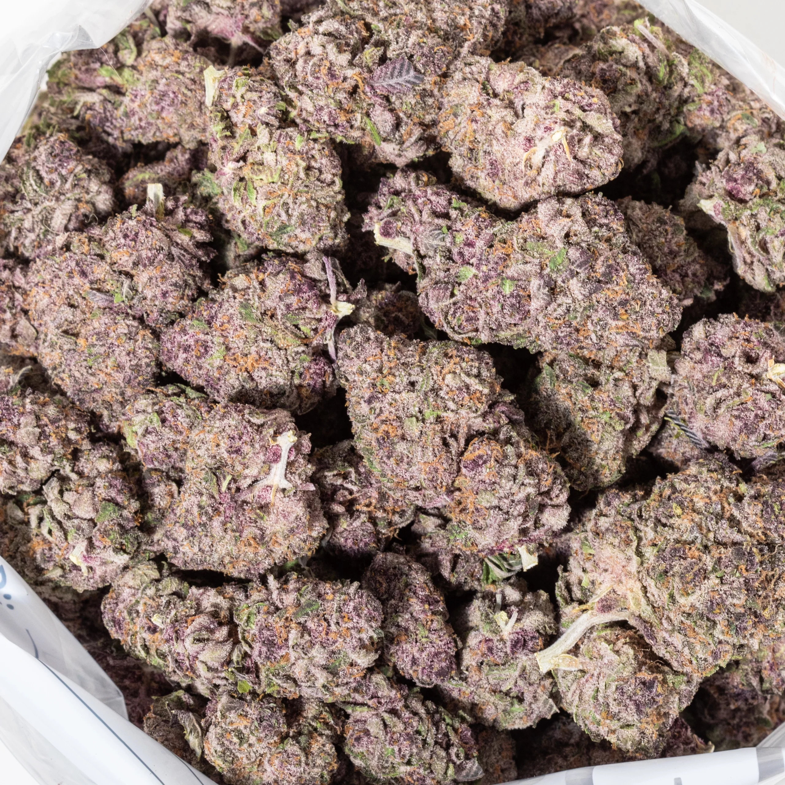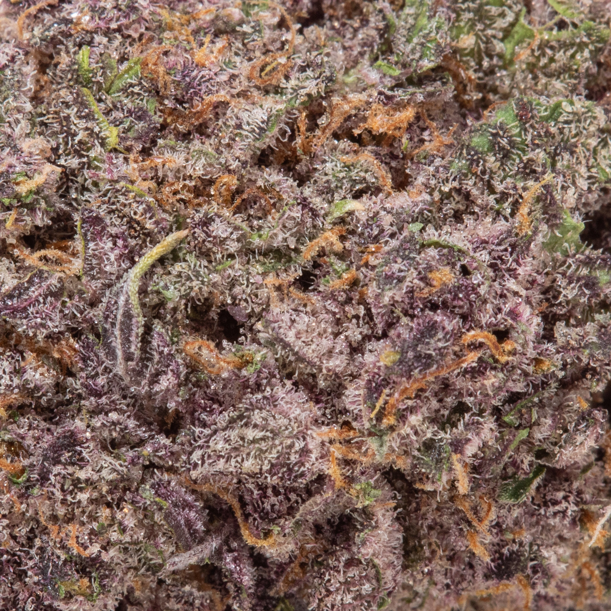 Trichomes: Heavy, sparkling trichome coverage giving a frosty, almost white appearance.