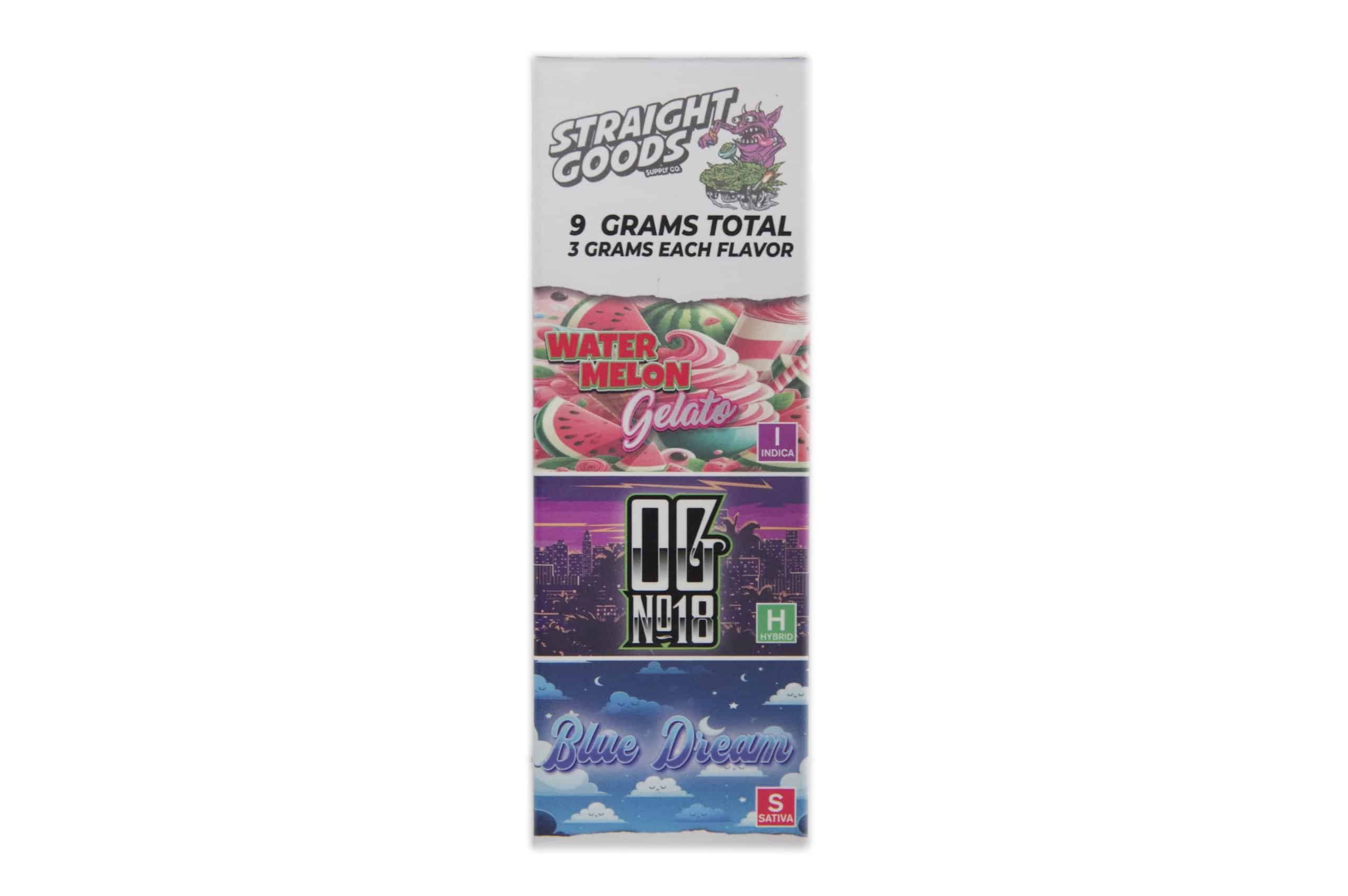 Straight Goods – Triple Chamber Vape – Watermelon Gelato + OG No18 + Blue Dream (3 Grams + 3 Grams + 3 Gram)