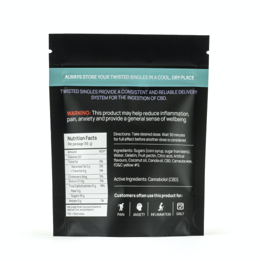 All chill, no buzz. New Sour Twisted Singles are made with the same CBD we use to infuse our CBD Jelly Bombs.